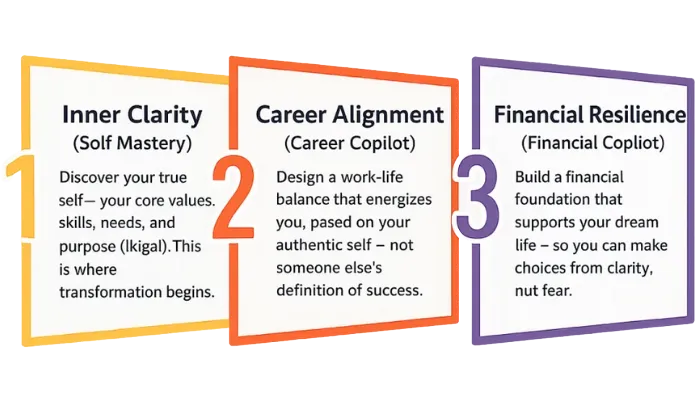 Drawing on deep experience in holistic coaching, I weave together the Enneagram, generational traits, and IKIGAI to guide clients through transformative self-discovery. Together, we uncover the hidden toll of an ill-fitting career, realign professional paths with personal purpose, and foster fulfillment—without compromise.